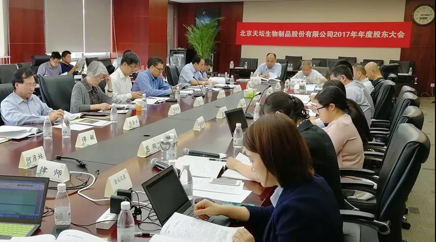 5月22日,北京天壇生物制品股份有限公司召開2017年年度股東大會。公司副董事長楊匯川先生主持會議。會上,公司與各位股東及授權(quán)代表就有關(guān)議案進行審議表決,并圍繞血液制品行業(yè)情況、公司經(jīng)營現(xiàn)狀、組織架構(gòu)調(diào)整等內(nèi)容進行了充分溝通與交流。